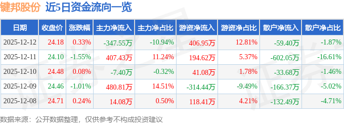 12月12日的资金流向数据方面,主力资金净流出347.55万元,占总成交额10.94%,游资资金净流入406.95万元,占总成交额12.81%,散户资金净流出59.4万元,占总成交额1.87%。