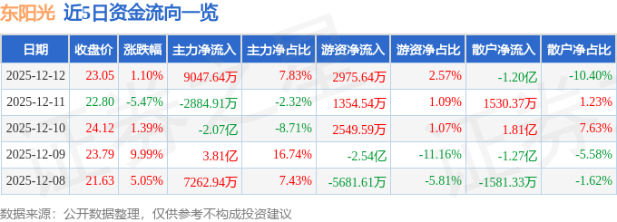 证券之星消息,截至2025年12月12日收盘,东阳光(600673)报收于23.05元,上涨1.1%,换手率1.7%,成交量50.91万手,成交额11.56亿元。