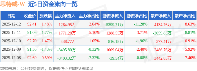 12月12日的资金流向数据方面,主力资金净流入1264.95万元,占总成交额2.64%,游资资金净流出5399.71万元,占总成交额11.28%,散户资金净流入4134.76万元,占总成交额8.63%。