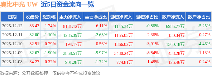 12月12日的资金流向数据方面,主力资金净流入8131.12万元,占总成交额6.11%,游资资金净流出1145.34万元,占总成交额0.86%,散户资金净流出6985.77万元,占总成交额5.25%。