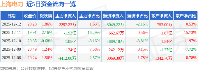 证券之星消息,截至2025年12月12日收盘,上海电力(600021)报收于20.28元,上涨1.86%,换手率2.49%,成交量70.24万手,成交额14.11亿元。