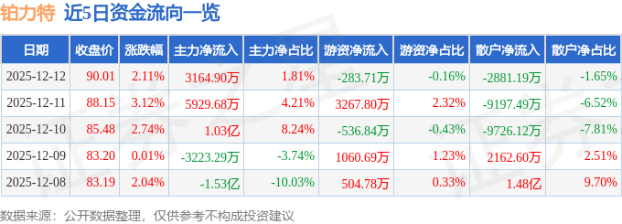 12月12日的资金流向数据方面,主力资金净流入3164.9万元,占总成交额1.81%,游资资金净流出283.71万元,占总成交额0.16%,散户资金净流出2881.19万元,占总成交额1.65%。
