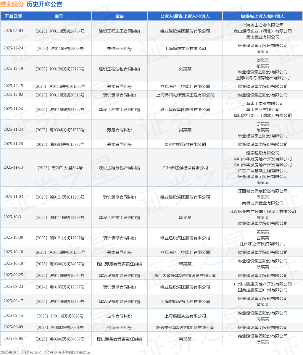 证券之星消息,根据天眼查APP显示,近日公布了一则维业建设集团股份有限公司作为被告/被上诉人的开庭公告,详细内容如下: