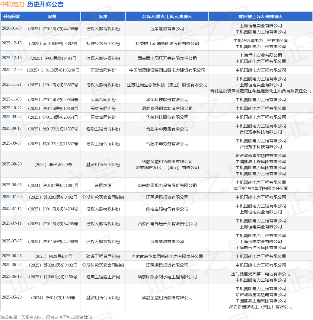 证券之星消息,根据天眼查APP显示,近日公布了一则中机国能电力工程有限公司作为被告/被上诉人的开庭公告,详细内容如下: