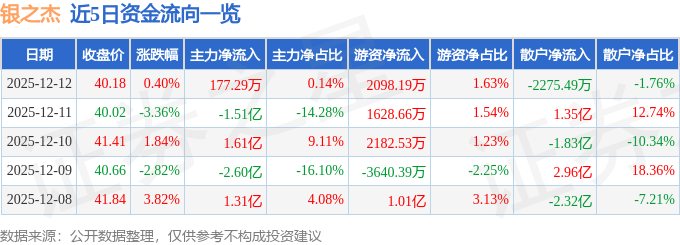 证券之星消息,截至2025年12月12日收盘,银之杰(300085)报收于40.18元,上涨0.4%,换手率4.89%,成交量31.9万手,成交额12.9亿元。