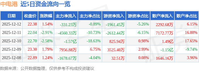 12月12日的资金流向数据方面,主力资金净流出331.23万元,占总成交额0.89%,游资资金净流出1961.45万元,占总成交额5.26%,散户资金净流入2292.68万元,占总成交额6.15%。