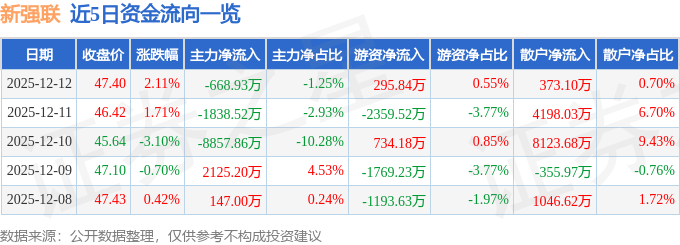证券之星消息,截至2025年12月12日收盘,新强联(300850)报收于47.4元,上涨2.11%,换手率3.78%,成交量11.38万手,成交额5.35亿元。
