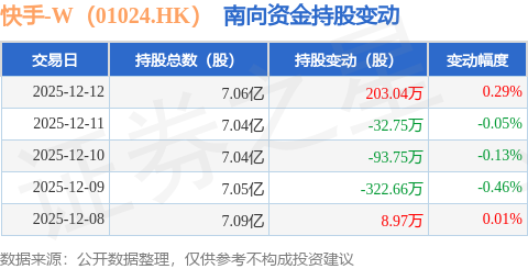 证券之星消息,12月12日南向资金增持203.04万股快手-W(01024.HK)。近5个交易日中,获南向资金减持的有3天,累计净减持237.15万股。近20个交易日中,获南向资金增持的有10天,累计净增持2265.55万股。截至目前,南向资金持有快手-W(01024.HK)7.06亿股,占公司已发行普通股的16.33%。
