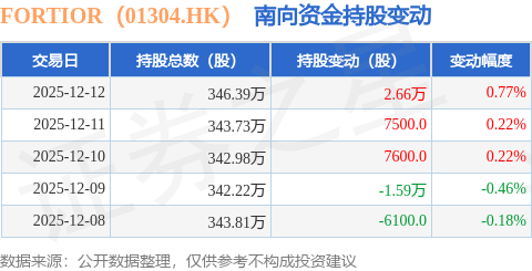 证券之星消息,12月12日南向资金增持2.66万股FORTIOR(01304.HK)。近5个交易日中,获南向资金增持的有3天,累计净增持1.97万股。近20个交易日中,获南向资金增持的有11天,累计净增持9800.0股。截至目前,南向资金持有FORTIOR(01304.HK)346.39万股,占公司已发行普通股的16.06%。