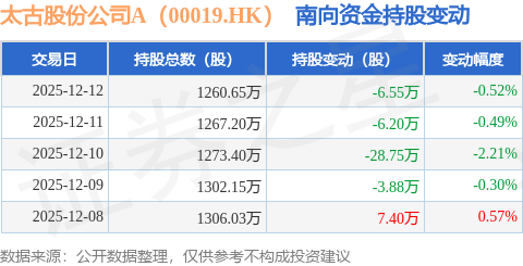 证券之星消息,12月12日南向资金减持6.55万股太古股份公司A(00019.HK)。近5个交易日中,获南向资金减持的有4天,累计净减持37.98万股。近20个交易日中,获南向资金减持的有8天,累计净减持16.08万股。截至目前,南向资金持有太古股份公司A(00019.HK)1260.65万股,占公司已发行普通股的1.61%。