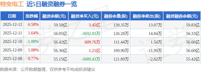 特变电工融资融券信息显示,融资方面,当日融资买入16.1亿元,融资偿还12.65亿元,融资净买入3.45亿元,净买入额两市排名第1。融券方面,融券卖出27.92万股,融券偿还14.85万股,融券余量139.35万股,融券余额3317.85万元。融资融券余额59.83亿元。