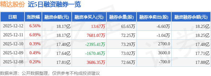 精达股份融资融券信息显示,融资方面,当日融资买入2.92亿元,融资偿还2.92亿元,融资净买入13.67万元。融券方面,融券卖出8500.0股,融券偿还7.45万股,融券余量65.65万股,融券余额768.11万元。融资融券余额18.25亿元。