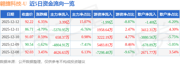 证券之星消息,截至2025年12月12日收盘,翱捷科技(688220)报收于92.22元,上涨6.35%,换手率6.97%,成交量25.12万手,成交额22.49亿元。