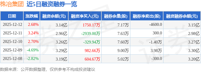 株冶集团融资融券信息显示,融资方面,当日融资买入5724.88万元,融资偿还3974.71万元,融资净买入1750.17万元。融券方面,融券卖出4400.0股,融券偿还9000.0股,融券余量7.17万股,融券余额112.64万元。融资融券余额3.15亿元。