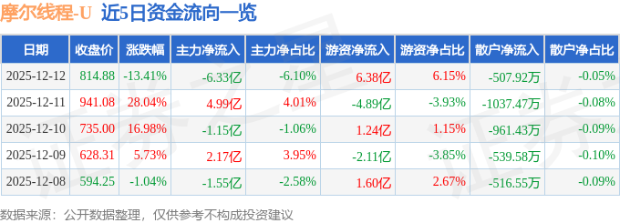 12月12日的资金流向数据方面,主力资金净流出6.33亿元,占总成交额6.1%,游资资金净流入6.38亿元,占总成交额6.15%,散户资金净流出507.92万元,占总成交额0.05%。