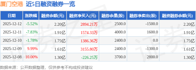 证券之星消息,截至2025年12月12日收盘,厦门空港(600897)报收于17.8元,下跌5.52%,换手率7.13%,成交量29.74万手,成交额5.35亿元。