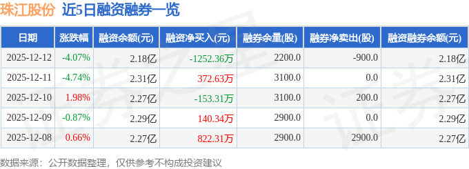 证券之星消息,截至2025年12月12日收盘,珠江股份(600684)报收于4.24元,下跌4.07%,换手率3.55%,成交量30.32万手,成交额1.3亿元。