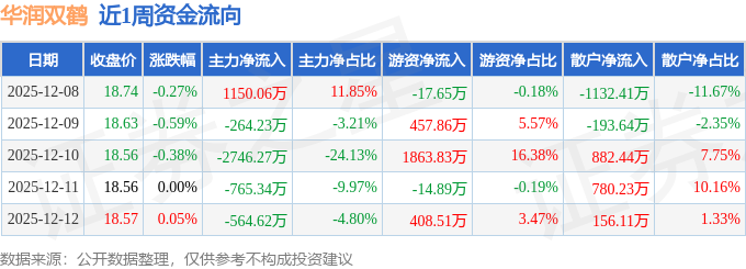 资金流向数据方面,本周华润双鹤主力资金合计净流出3190.4万元,游资资金合计净流入2697.66万元,散户资金合计净流入492.73万元。本周资金流向一览见下表: