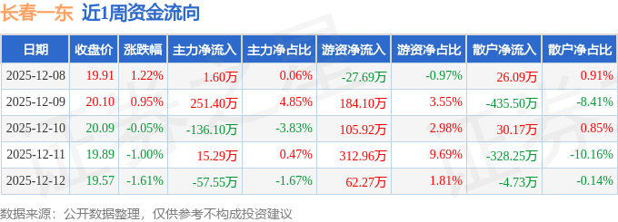 资金流向数据方面,本周长春一东主力资金合计净流入74.64万元,游资资金合计净流入637.56万元,散户资金合计净流出712.21万元。本周资金流向一览见下表: