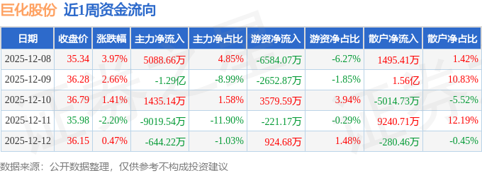 资金流向数据方面,本周巨化股份主力资金合计净流出1.61亿元,游资资金合计净流出4953.84万元,散户资金合计净流入2.1亿元。本周资金流向一览见下表:
