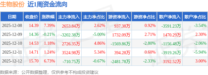 资金流向数据方面,本周生物股份主力资金合计净流入4992.05万元,游资资金合计净流出987.89万元,散户资金合计净流出4004.16万元。本周资金流向一览见下表: