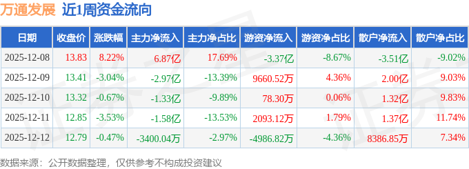 资金流向数据方面,本周万通发展主力资金合计净流入6573.44万元,游资资金合计净流出2.68亿元,散户资金合计净流入2.03亿元。本周资金流向一览见下表: