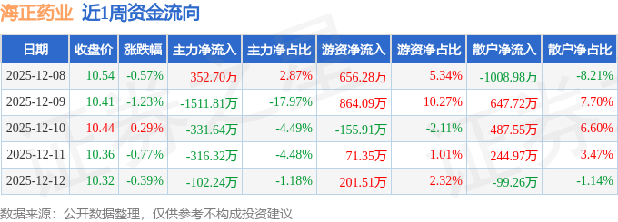 沪深股通持股方面,截止2025年12月12日收盘,海正药业沪股通持股数为1386.66万股,占流通股比为116.0%。