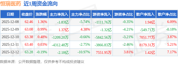 资金流向数据方面,本周恒瑞医药主力资金合计净流出3.19亿元,游资资金合计净流出1.64亿元,散户资金合计净流入4.83亿元。本周资金流向一览见下表: