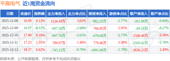 资金流向数据方面,本周平高电气主力资金合计净流出426.45万元,游资资金合计净流出1877.67万元,散户资金合计净流入2304.12万元。本周资金流向一览见下表: