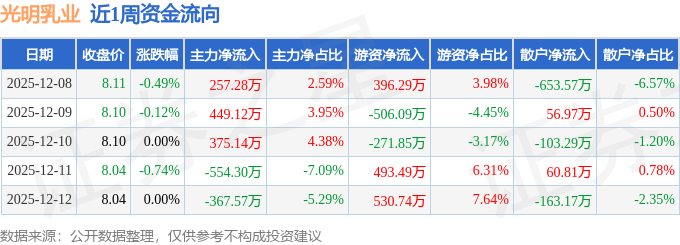 沪深股通持股方面,截止2025年12月12日收盘,光明乳业沪股通持股数为1319.63万股,占流通股比为96.0%。