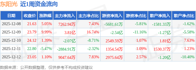 资金流向数据方面,本周东阳光主力资金合计净流入3.08亿元,游资资金合计净流出2.42亿元,散户资金合计净流出6619.85万元。本周资金流向一览见下表: