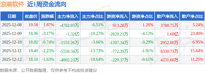 资金流向数据方面,本周浪潮软件主力资金合计净流出2.9亿元,游资资金合计净流出4306.06万元,散户资金合计净流入3.33亿元。本周资金流向一览见下表: