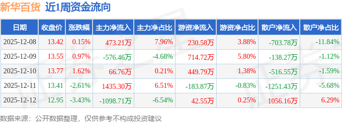 资金流向数据方面,本周新华百货主力资金合计净流入300.1万元,游资资金合计净流入1253.77万元,散户资金合计净流出1553.87万元。本周资金流向一览见下表: