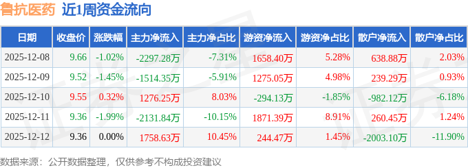 资金流向数据方面,本周鲁抗医药主力资金合计净流出2908.58万元,游资资金合计净流入4755.18万元,散户资金合计净流出1846.6万元。本周资金流向一览见下表: