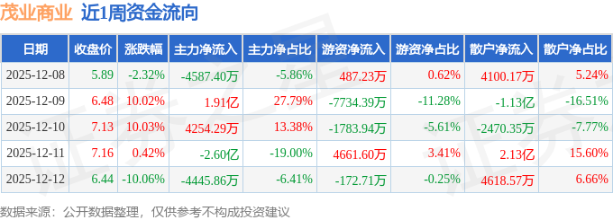 资金流向数据方面,本周茂业商业主力资金合计净流出1.17亿元,游资资金合计净流出4542.2万元,散户资金合计净流入1.63亿元。本周资金流向一览见下表: