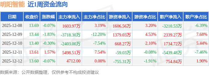 资金流向数据方面,本周明阳智能主力资金合计净流入981.65万元,游资资金合计净流入2839.52万元,散户资金合计净流出3821.17万元。本周资金流向一览见下表: