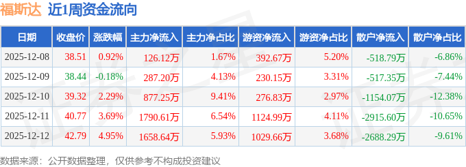 资金流向数据方面,本周福斯达主力资金合计净流入4739.8万元,游资资金合计净流入3054.31万元,散户资金合计净流出7794.11万元。本周资金流向一览见下表: