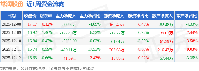 资金流向数据方面,本周常润股份主力资金合计净流出579.43万元,游资资金合计净流入301.71万元,散户资金合计净流入277.72万元。本周资金流向一览见下表: