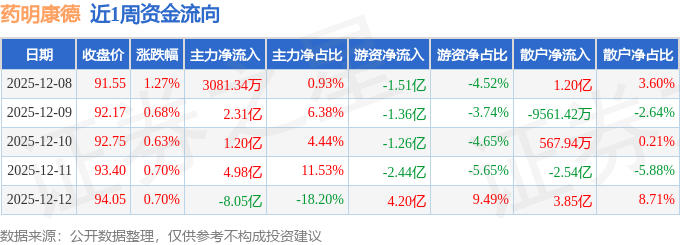 资金流向数据方面,本周药明康德主力资金合计净流入7481.39万元,游资资金合计净流出2.36亿元,散户资金合计净流入1.61亿元。本周资金流向一览见下表: