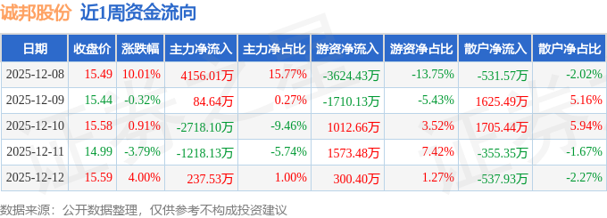 资金流向数据方面,本周诚邦股份主力资金合计净流入541.95万元,游资资金合计净流出2448.03万元,散户资金合计净流入1906.08万元。本周资金流向一览见下表: