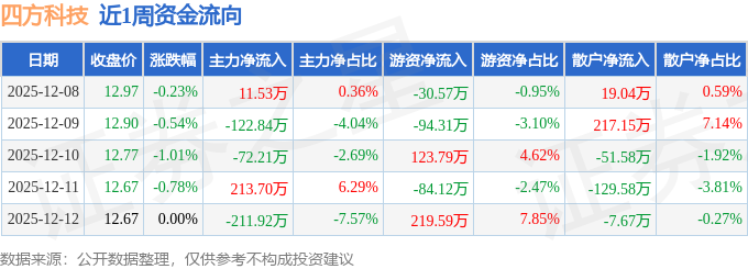 资金流向数据方面,本周四方科技主力资金合计净流出181.75万元,游资资金合计净流入134.38万元,散户资金合计净流入47.36万元。本周资金流向一览见下表: