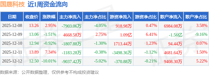 资金流向数据方面,本周国晟科技主力资金合计净流出1.53亿元,游资资金合计净流入9656.05万元,散户资金合计净流入5607.01万元。本周资金流向一览见下表: