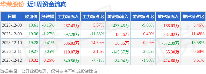 沪深股通持股方面,截止2025年12月12日收盘,华荣股份沪股通持股数为646.15万股,占流通股比为195.0%。