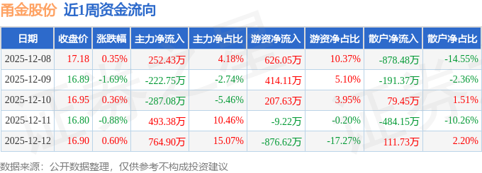 资金流向数据方面,本周甬金股份主力资金合计净流入1000.87万元,游资资金合计净流入361.94万元,散户资金合计净流出1362.81万元。本周资金流向一览见下表: