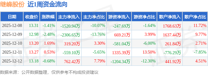 资金流向数据方面,本周继峰股份主力资金合计净流出3305.07万元,游资资金合计净流出28.46万元,散户资金合计净流入3333.54万元。本周资金流向一览见下表: