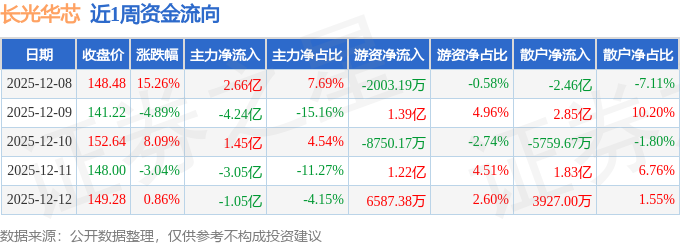 资金流向数据方面,本周长光华芯主力资金合计净流出4.22亿元,游资资金合计净流入2.19亿元,散户资金合计净流入2.04亿元。本周资金流向一览见下表: