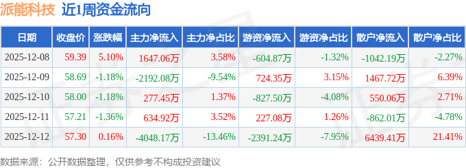 资金流向数据方面,本周派能科技主力资金合计净流出3680.82万元,游资资金合计净流出2872.17万元,散户资金合计净流入6552.99万元。本周资金流向一览见下表: