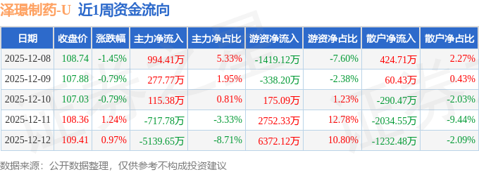资金流向数据方面,本周泽璟制药主力资金合计净流出4469.86万元,游资资金合计净流入7542.23万元,散户资金合计净流出3072.36万元。本周资金流向一览见下表: