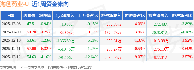 资金流向数据方面,本周海创药业主力资金合计净流出4450.72万元,游资资金合计净流入4641.73万元,散户资金合计净流出191.01万元。本周资金流向一览见下表: