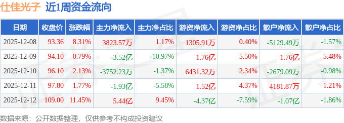 资金流向数据方面,本周仕佳光子主力资金合计净流出77.79万元,游资资金合计净流出3185.2万元,散户资金合计净流入3262.99万元。本周资金流向一览见下表: